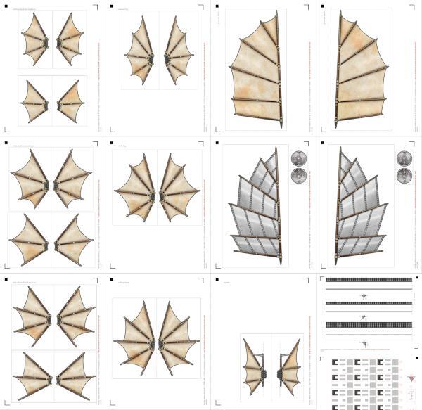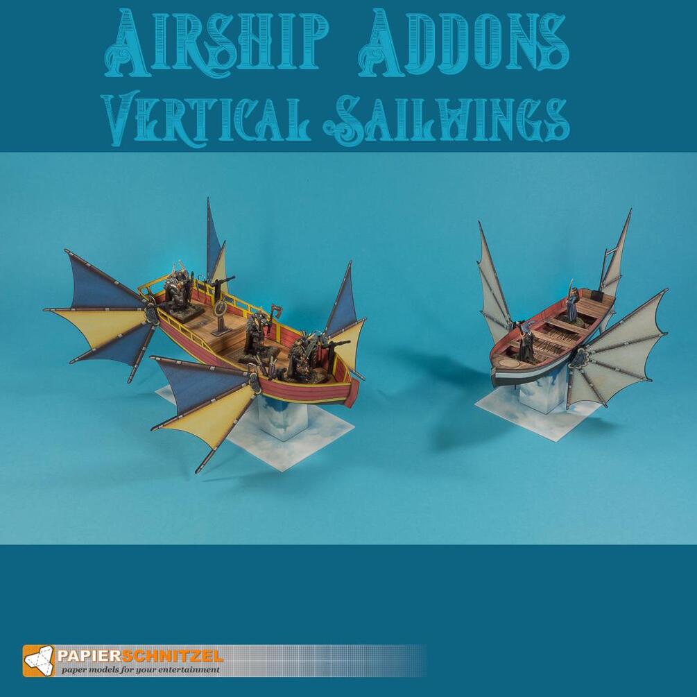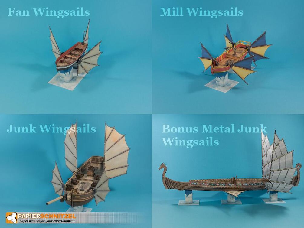 The sailwings can be built and attached to any ship (preferable papercraft) hull, either glued on, or attached with paper clips or a pure-paper connect solution (included)
